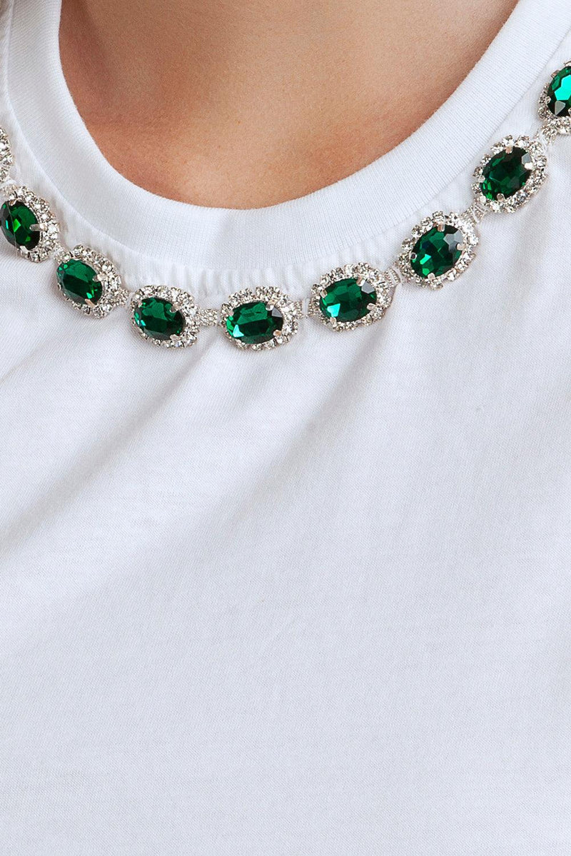 Descrizione: T-shirt crop realizzata in 100% cotone. Collo rotondo e maniche corte. Dettaglio applicazione colorata lungo il girocollo e label personalizzata ricamata sul retro.
